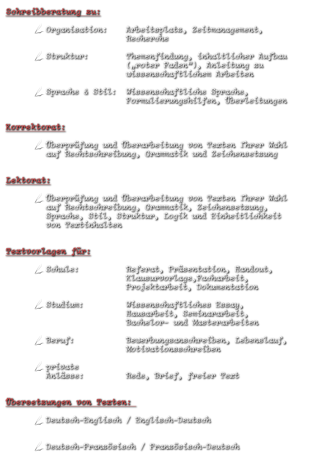 Das Hexenwerk Ingenium hat ein breites Spektrum an Dienstleistungen rund um Sprache und Texte aller Art für Schule, Studium, Beruf und Privatleben